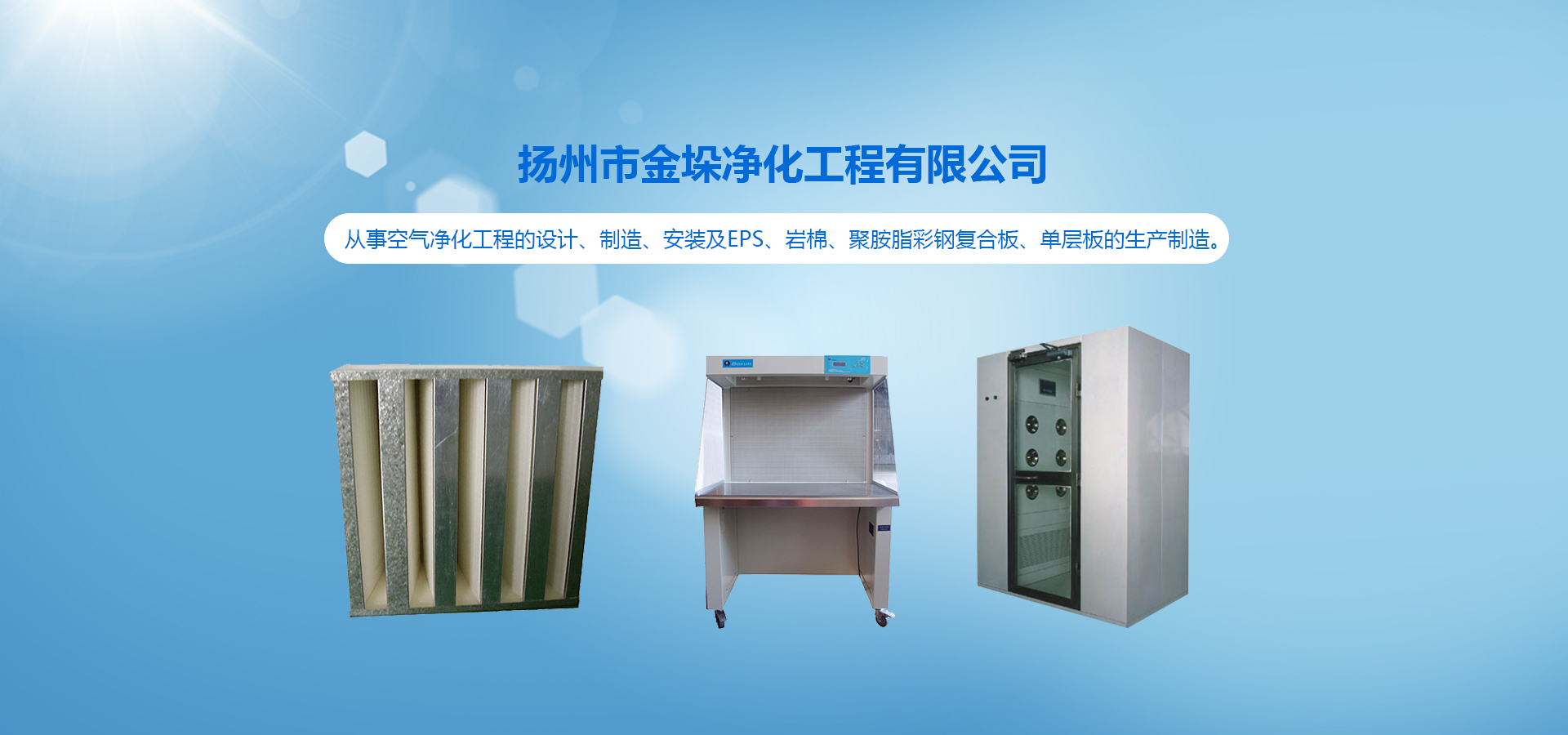 我司專業從事空氣凈化工程的設計、制造、安裝及EPS、巖棉、聚胺脂彩鋼復合板、單層板的生產制造。